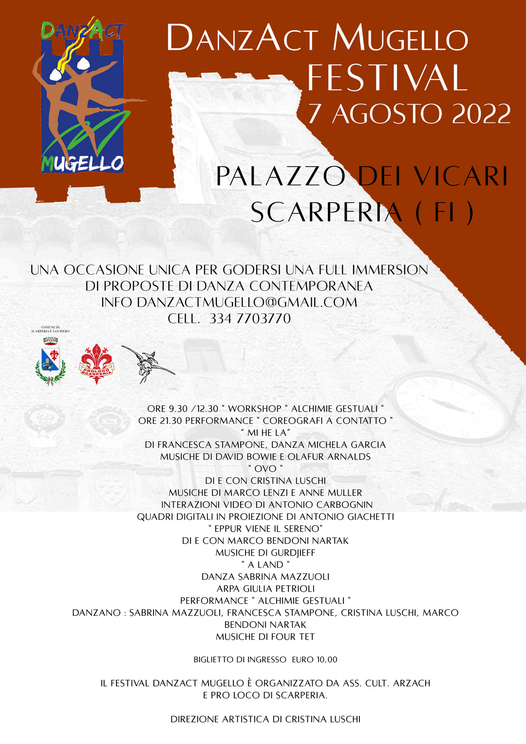 Il Festival DanzAct Mugello è organizzato da Ass. Cult. Arzach e Pro Loco di Scarperia. Direzione Artistica di Cristina Luschi
