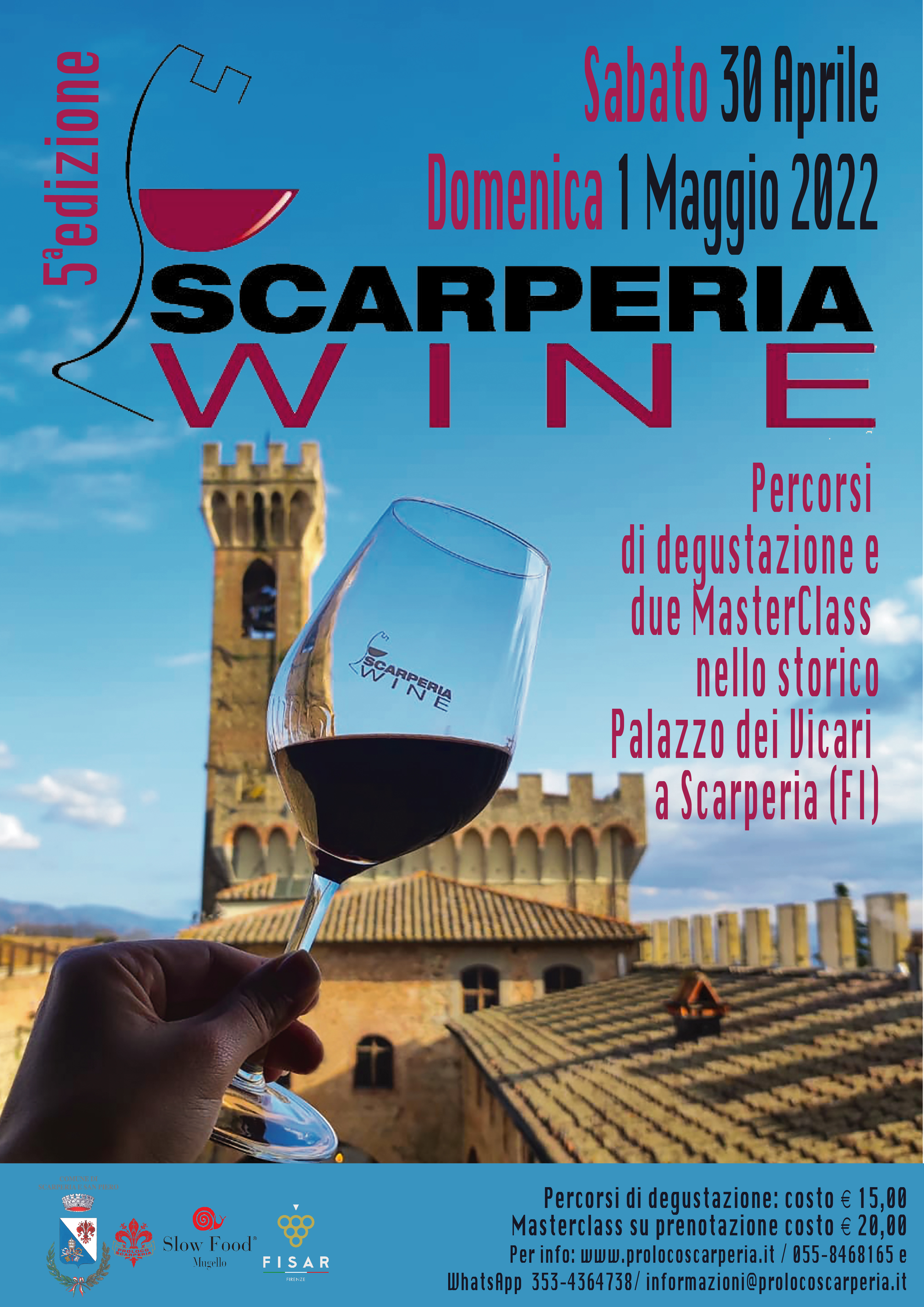 Sabato 30 aprile dalle ore 15:00 alle ore 20:00 e domenica 1° maggio dalle ore 10:00 alle ore 20:00 si terrà a Palazzo dei Vicari di Scarperia (FI) la 5ª edizione di Scarperia Wine. Dopo lo stop dovuto all’emergenza Coronavirus, visto il grande successo delle prime edizioni, la Pro Loco di Scarperia ripropone l’evento dedicato all’affascinante mondo del vino attraverso un percorso guidato di degustazione itinerante e due appuntamenti di Master Class in un contesto storico-culturale di grande impatto: la splendida cornice del rinascimentale Palazzo dei Vicari, cuore pulsante del paese di Scarperia, uno dei “Borghi più Belli di Italia”.